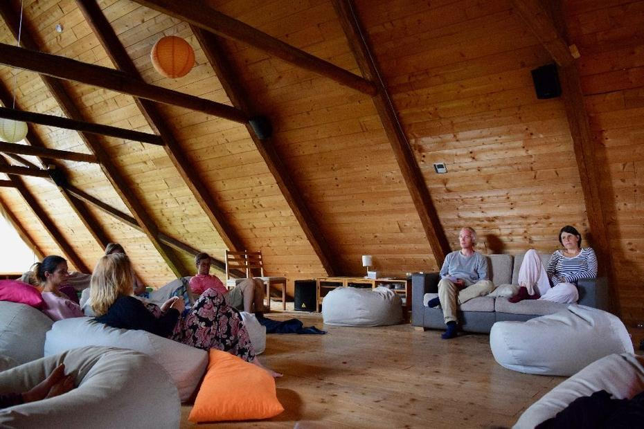 Jsou tu povětšinou lidé nějak spojení se světem vzdělávání, nebo se o něj zajímají kvůli svým dětem. Honza píše články s rodičovskými tématy, pořádá workshopy, se spoluautorkou napsal knihu Jak učit živě?. Je tu i učitel olomoucké SCIO školy, učitelka pražské waldorfské školy, taky asistent pedagoga. Celkově asi 40 lidí. „Jezdí hlavně rodiče nebo učitelé, kteří mají něco společného s lesními, waldorfskými, montessori nebo komunitními školami a školkami,“ říká organizátorka Jana Kočí. Sama má dceru v domácím vzdělávání a syna v běžné škole. Asi patnáct procent účastníků je podle ní ze zušek a běžných státních škol. Kromě učitelů jezdí lektoři jógy, koučové, programátoři, lidi z neziskovek různého typu, často pomáhajících, ale je tu i realitní makléř. Dvě třetiny jsou ženy. Průměrný věk kolem čtyřiceti. Jana Kočí je původní profesí ekonomka, pracuje v neziskovce a tato setkání, víkendová i delší, organizuje několikrát ročně.