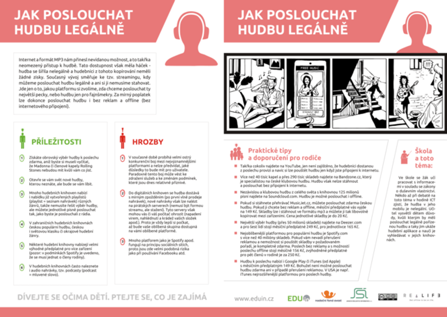 Hudba vždycky bývala generačním jablkem sváru. V době, kdy například jedna z nejoblíbenějších platforem k poslechu hudby Spotify výrazně zvýhodňuje rodinné předplatné, je ten správný čas k přemostění generačních propastí. Děti by se měly naučit pracovat s informacemi v souladu se zákony o duševním vlastnictví. Často ani netuší, že hudba v jejich mobilu je ilegální. Pirátské servery na stahování hudby se přitom nevyplatí už proto, že mohou ohrozit váš počítač – napadnout ho virem nebo ukrást vaše složky.