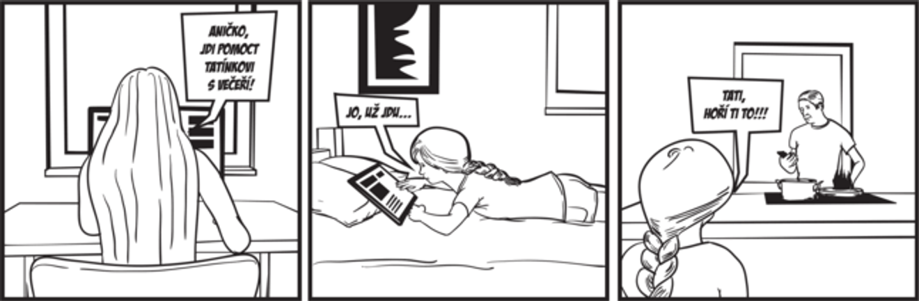 Ten se svým dětem snaží dávat třeba novinářka Lucie. „Pracuju z domova a to je vždycky ošemetné, kdy počítač vypnout. Aby mi to nepřerostlo přes hlavu, zavedla jsem si sama pro sebe jednoduché pravidlo: počítač vypínám a mobil odkládám, jakmile dorazí děti ze školy a školky. Když něco hoří, vrátím se k tomu, když jdou dcery spát. Musím říct, že to úplně proměnilo naše podvečery. Čteme si spolu, cvičíme na klavír, hrajeme hry nebo společně něco upečeme. Věřím, že si na to holky zvyknou a až budou mít samy telefony a počítače, budou se držet pravidla, že společný čas je svatý a technologie do něj pokud možno nepatří.“