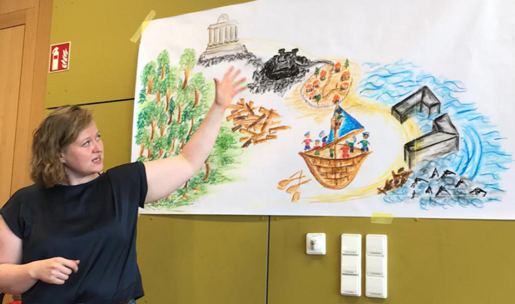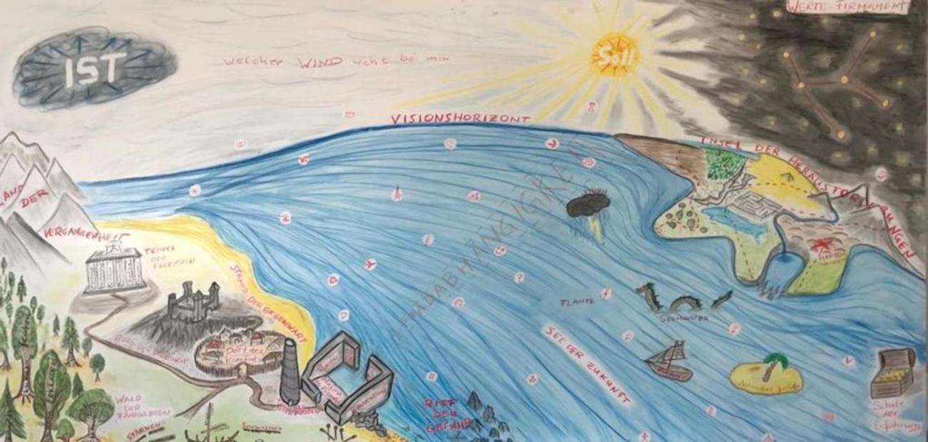 Žákům třetích tříd v berlínské škole Miriam-Makeba v tom pomáhá metafora dvou pirátů na opuštěném ostrově. Starý zkušený pirát, který pracuje vědomě, a mladý, který je zas silný, nepřipouští si žádné nebezpečí a klidně by bezhlavě skočil do moře v touze uplavat pryč. Oba piráty nosíme všichni v sobě. „V našem příběhu si spolu povídají. Starý dává mladému úkoly, ale my ještě netušíme, co přijde potom. Ale víme, že nás čeká velké dobrodružství. Tím je ve skutečnosti rozvoj vlastní osobnosti. Tak jako nevíme, kam se v našem příběhu piráti dostanou, nevíme, jací budeme my třeba za dva roky. Ale máme chuť se vyvíjet. Máme chuť na sobě dál pracovat,“ vysvětluje Anastasia Schönfeld, která také vyučuje hudební výchovu.