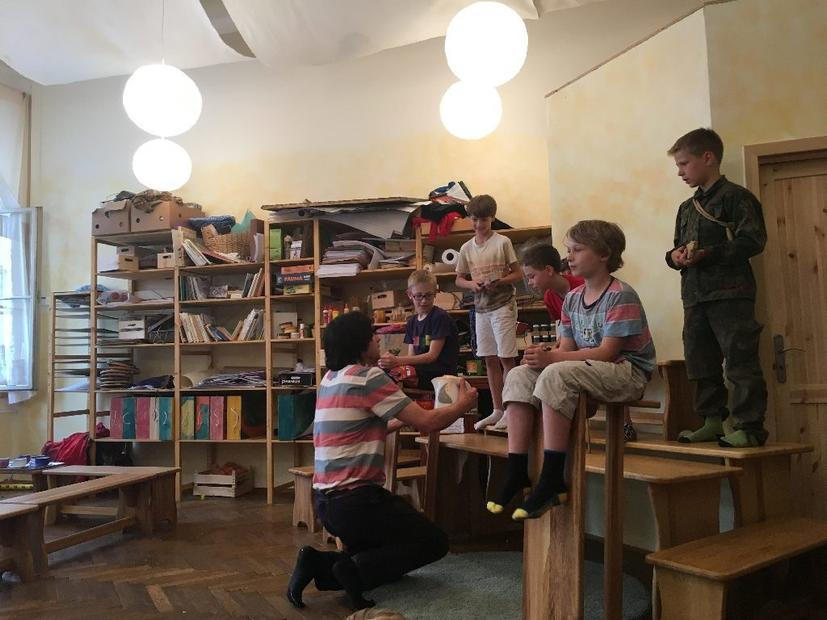 Co kdybychom zkusili s dětmi udělat divadelní představení jen tak z ničeho a bez omezení, napadlo mě, a tak jsme do školy pozvali na týden německého lektora intuitivní pedagogiky a divadelníka Lukase Königa, aby to zařídil. Postupy nebo spíš zdánlivá absence postupů tohoto pedagogického směru by se mohly ke spontánnímu dětskému divadlu dobře hodit, říkal jsem si. Důležité je děti nijak neumravňovat, i když zlobí. Jde o to integrovat zlobení do hry. Myslím, že se to povedlo.