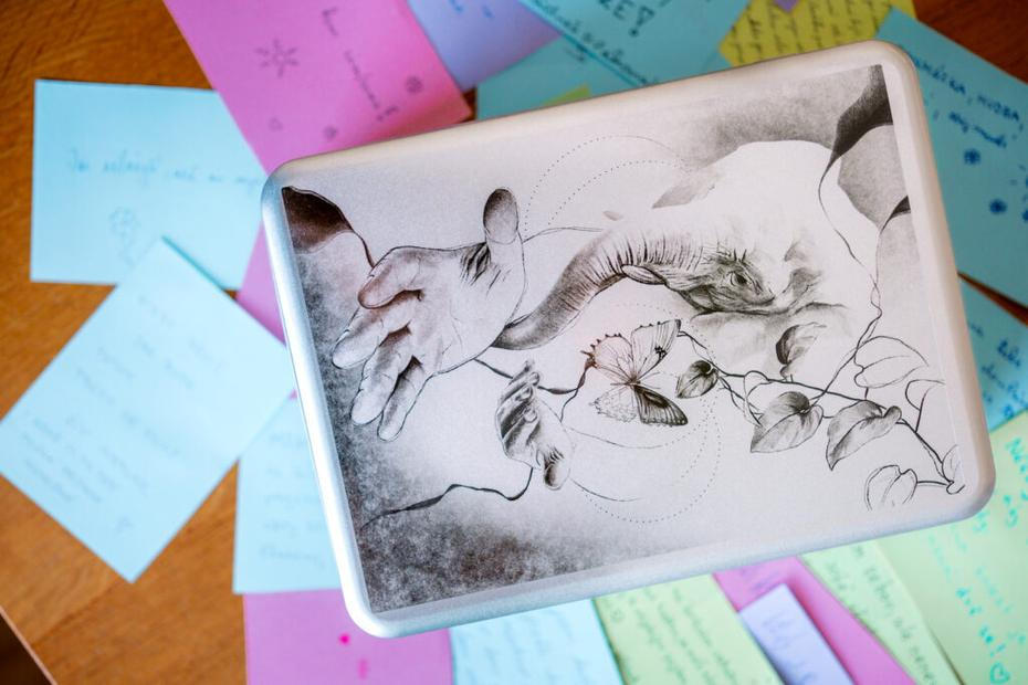 Veronika Šibůrková z třebíčského katolického gymnázia, která se se sebepoškozováním setkala mezi svými žáky, se pustila do projektu „záchranné krabičky“. Tu si můžete představit jako možnost první pomoci těm, kteří mají nutkání si ublížit. „Když se stalo to, co se stalo, opravdu hodně mě to zasáhlo, a začala jsem hledat možnosti, jak dětem, které to potřebují, ulevit. A na slovenském webu ipcko.sk jsem našla možnost koupit Krabičku bezpečia s úlevovými metodami při nutkání si ubližovat. Byla skvělá – ale také jsem viděla potenciál přidat další metody, zmenšit ji, aby se vešla do batohu, i změnit její přebal, o jehož grafiku se postaral tatér. A vznikl také instagramový profil vzkazy_na_tele, kde metod sdílím ještě mnohem více,“ vysvětluje Veronika Šibůrková, k čemu ji přivedlo sebepoškozování mezi dětmi z její školy.
