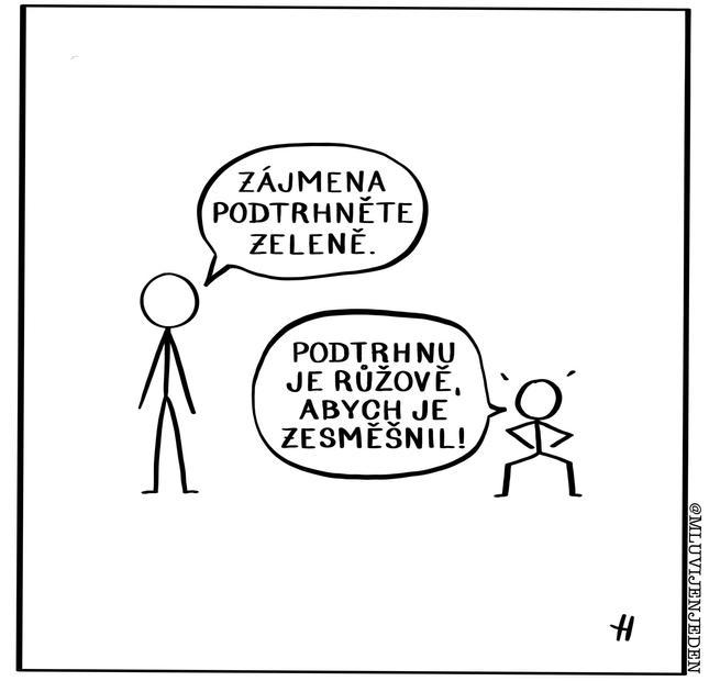 To, že se za profilem Mluví jen jeden skrývám právě já, ví moje nejužší rodina, s výjimkou jednoho mého sourozence. V práci to ví pár kolegyň, mezi něž to nějak prosáklo, ale taky ne všechny. Já hlavně nechci, aby se to dozvěděly děti, protože pak už vidím naše druhostupňáky, jak moje komiksy tisknou, vyvěšují je po škole a všelijak komentují. V tu chvíli bych ztratil svobodu, kterou teď mám, protože bych se začal cenzurovat, aby se nějaké konkrétní dítě náhodou v obrázku nepoznalo. Navíc tu máme rodiče, kterým by nemuselo být příjemné, že jejich dítě učí někdo, kdo o tom pak vytváří vtípky. Nejsou vulgární ani nějaké zlé, ale prostě mi přijde lepší zůstávat skrytý, abych nepřišel o svou autenticitu.
