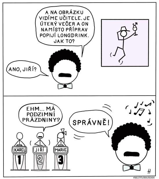 Na svém profilu ne, spíš to pak lidé jízlivě komentují, když můj obsah někdo přesdílí. Nějak intenzivněji učitelé řešili vlastně jen ty prázdniny. Já ale vědomě nechodím do nějakých palčivých témat, jde mi opravdu spíš jen o ten vtip, o reflexi nějakého momentu. A učitelé to podle mě chápou, často pod moje obrázky přidávají svoje vtipné situace, komentují si je navzájem a je to i pro ně takový ventil. Za to jsem rád.