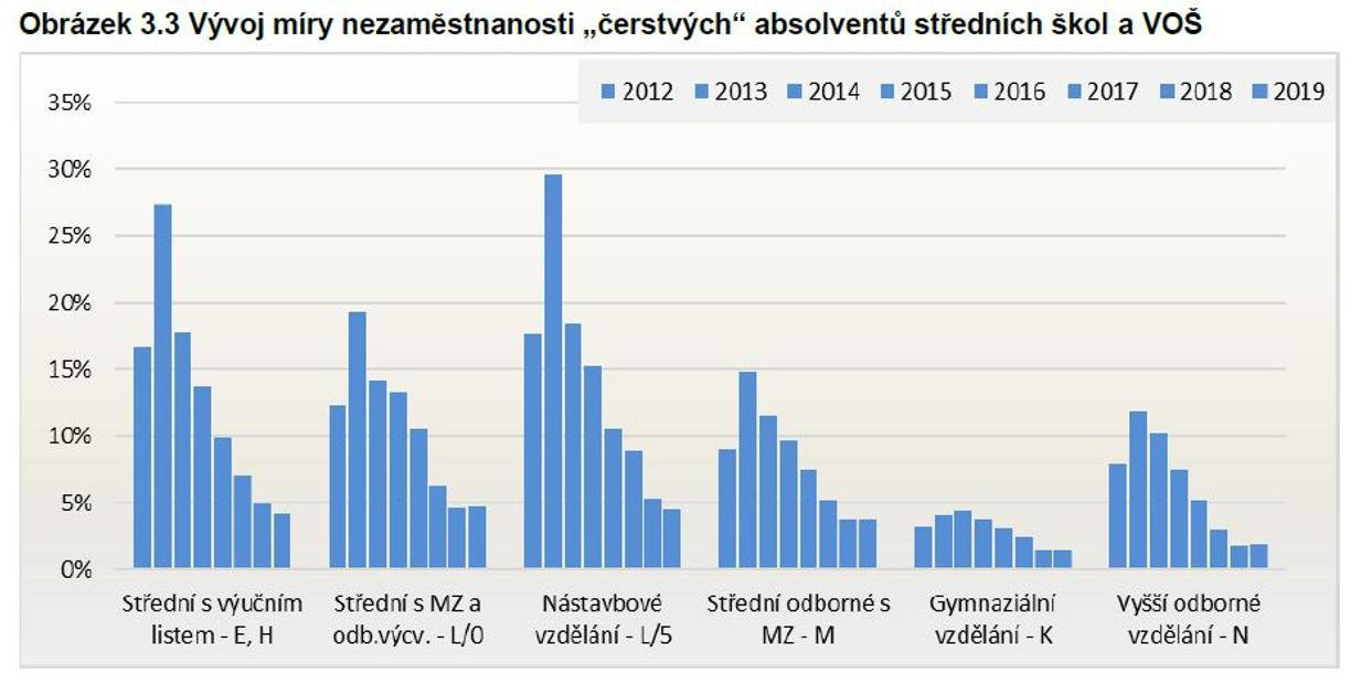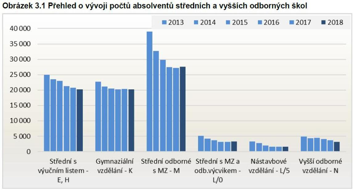 V tomhle vzdělávacím segmentu je to trend. I tak je v Česku počet absolventů s výučním listem skoro stejný jako na gymnáziích, a těch se středním odborným vzděláním s maturitou daleko nejvíc.