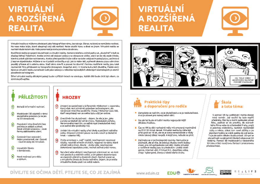 Velké příležitosti představuje virtuální realita pro vzdělávání. Žáci by si mohli vyzkoušet pitvat žábu, podívat se do pravěku, do starověkého Říma nebo středověké Prahy, projít si jadernou elektrárnu, navštívit nejrůznější státy a města, získat tam nové zážitky a na konci hodiny se vrátit do své lavice. To je ale zatím někde v budoucnosti. Již nyní se ale začínají i na základních školách objevovat 3D tiskárny. Pomocí 3D modelování a následného 3D tisku si žáci rozvíjí svou fantazii i prostorovou představivost.