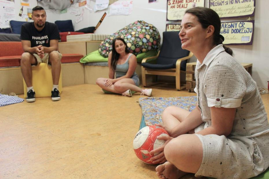 „Stoupneme si do kruhu a budeme si nejdřív házet míčkem,” začíná Michaela Stoilova akci v nízkoprahovém zařízení Kotelna ve Zruči nad Sázavou, kterou podpořila organizace Eduzměna. Jsou tu dospělí s dětmi a sociální pracovníci, větší děti tentokrát nepřišly. Učitelka postupně vytahuje větší a větší velikosti balonů a nakonec vyndá z batohu skleničku. „Chcete, abychom si s ní házeli?” přítomní se na ni dost překvapeně dívají, stojí daleko od sebe a pravděpodobnost, že někomu upadne, je poměrně vysoká. Maximálně se soustředí a sklenice nakonec nikomu nespadne. Tahle hra všem spontánně otevře téma strachu, takže se po jejím skončení všichni upřímně baví o tom, z čeho mají v životě strach a jak je osobně blokuje. Děti jsou viditelně potěšené, když slyší strachy dospělých. To jim dodává odvahu a chuť se také svěřit. Strach potom výtvarně vyjadřují a pak ve skupinkách hrají improvizované scénky, které přinášejí ještě mnohem hlubší vhled do toho, jak strach ovlivňuje život každého z nich.
