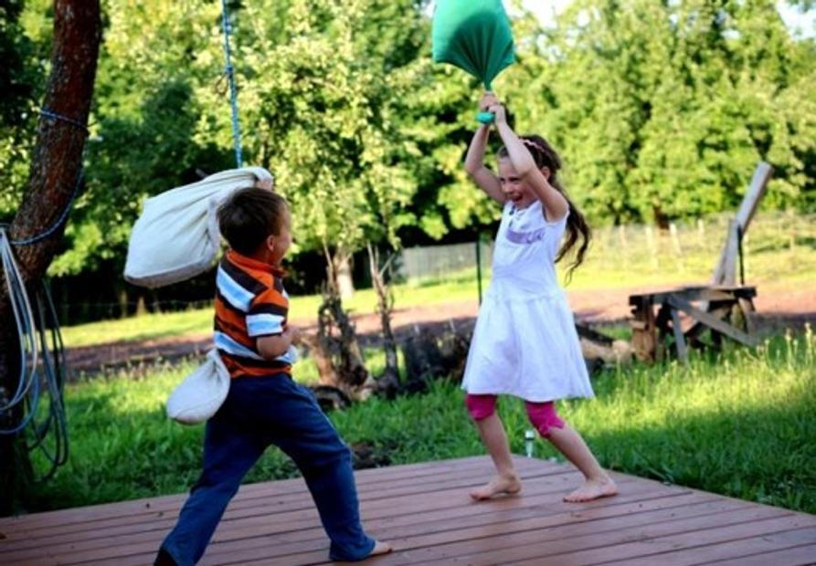 Výzkumy ukázaly, že velkou část dětských her tvoří takzvané bojové hry (v angličtině rough and tumble play). Míní se tím třeba hra na honěnou, polštářové bitvy nebo takové to hravé praní, které oba baví. Rodiče občas mají tendenci tyto hry ukončovat, což je škoda. Bojové hry rozvíjí děti nejen fyzicky, ale jsou zásadní i pro rozvoj improvizace, práce s vlastními emocemi, rozhodování pod tlakem a možná překvapivě mají vliv i na sociální inteligenci. Dítě se učí vciťovat do druhého. Jestli chce, aby hra pokračovala, musí poznat, kdy už je to druhému nepříjemné a trochu brzdit. A ještě jeden efekt volné hry: když dítě necháte, aby si dělalo, co chce, tak snadněji objevíte, jaký typ aktivity preferuje.