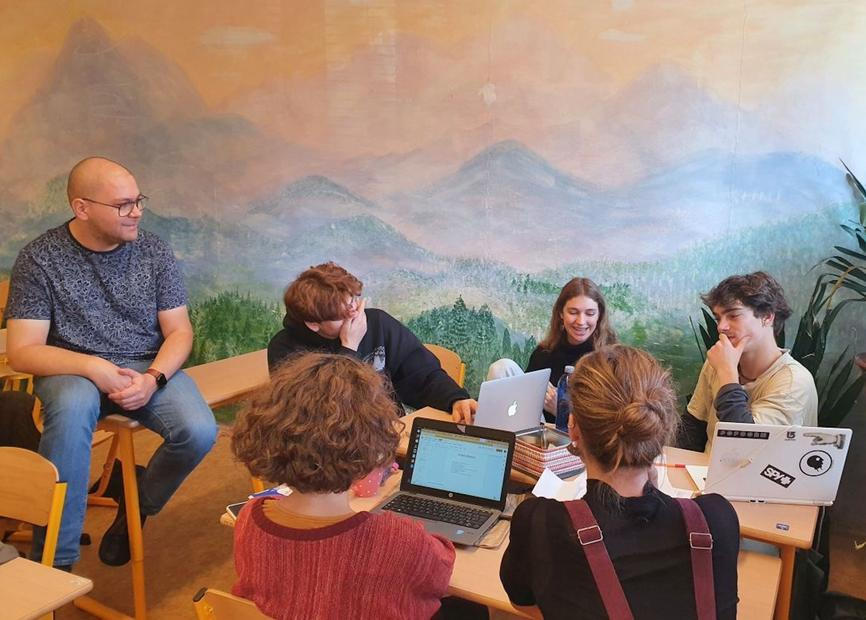 Debata ve skupině s učitelem na waldorfském lyceu. FOTO: Jitka Polanská