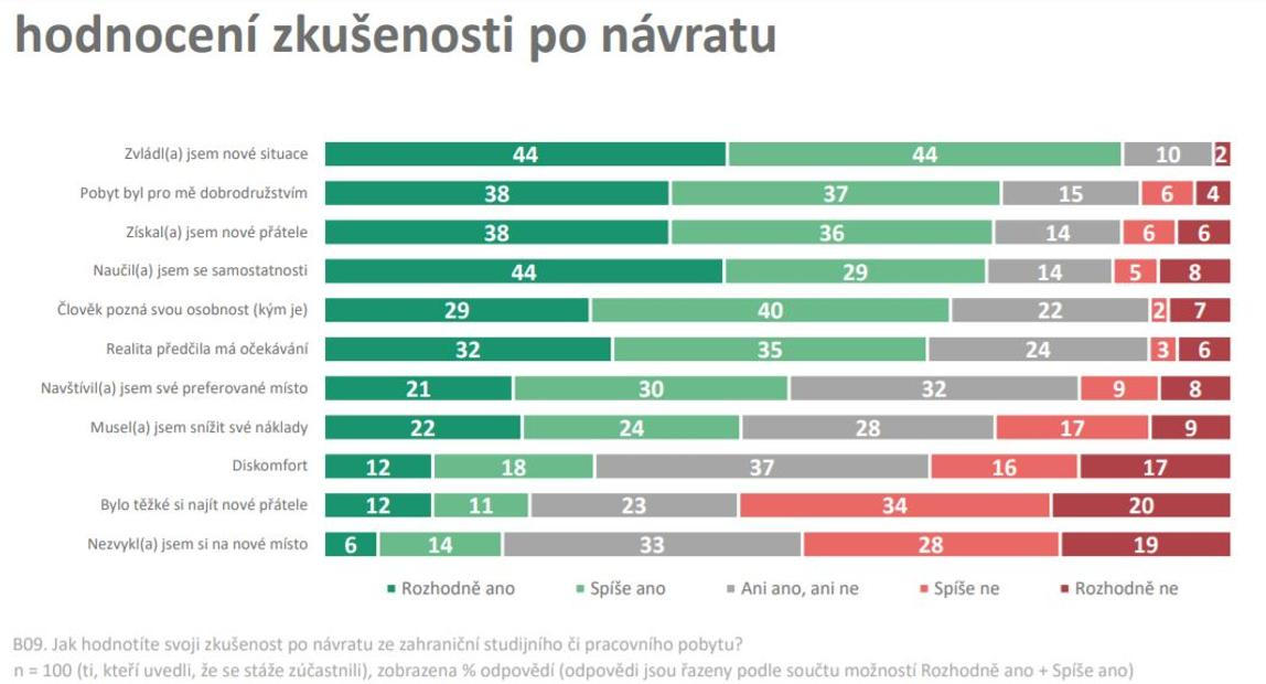 Studie z roku 2017, do které se zapojilo kolem osmi set vysokoškolských studentů, například zahrnuje kuriózní graf, podle kterého většina účastníků programu hodnotí své jazykové znalosti po příjezdu jako horší než před příjezdem! Podle autorů studie to zřejmě svědčí o lepším zhodnocení své jazykové úrovně poté, co si studenti použití jazyka vyzkoušeli v praxi. Že by se jim angličtina na stáži přímo zhoršila, tomu lze uvěřit jen stěží...