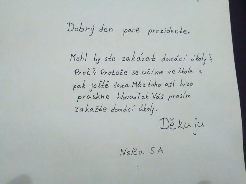 Milé děti, píše vám prezident: úkoly jsou pro vaše dobro