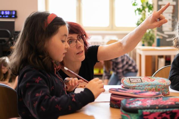 Musela jsem úplně opustit svou představu o roli učitele ve třídě, jak je v naší zemi většinově chápaná. Do té doby jsem měla představu učitele jako herce, který stojí před tabulí jako na pódiu a oči dětí jsou na něj upřeny. Líbilo se mi mít jejich pozornost, mít autoritu, trochu možná i moc. V montessori pedagogice je role učitele jiná. Stojí spíš mimo děti, jeho úkolem je navázat děti na spolužáky a učivo a sám být přitom v pozadí. Má hodně děti vnímat a pozorovat, aby jim dokázal nabízet to, co potřebují, ale nečinil je na sobě závislými. To se odráží i v tom známém montessori mottu „Pomoz mi, abych to dokázal sám“. Učitel u nás zkrátka nehraje první housle.