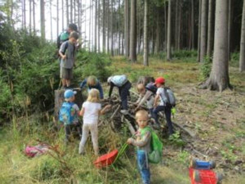 První půlden nové děti spíš jen sledují, sedí u nás, povídají si. Pak prostě vyskočí a jdou si něco vyzkoušet. Vezmou lopatku, vykopou díru. Nebo hrabičkami nahrnou na hromadu listí a jehličí a mají z toho strašnou radost a chtějí se tím pochlubit. Chodí za námi a ukazují, co udělaly a jak se jim to povedlo. Nepotřebují být obklopeni hračkami, stačí jim hlína, hrabičky a rýč.