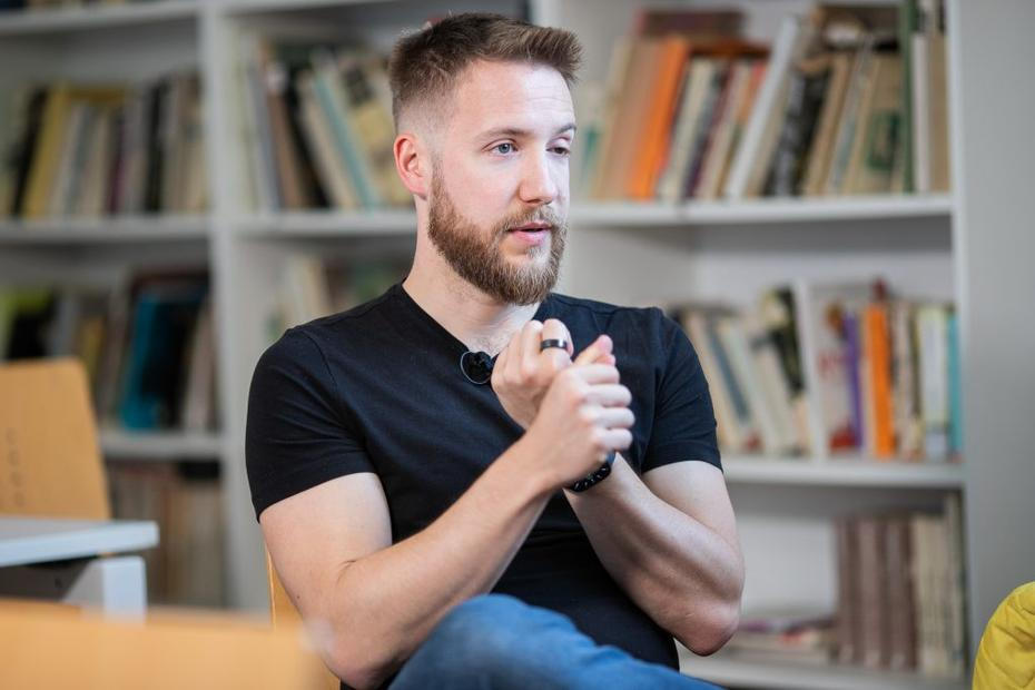 Už jsem tu čtvrtým rokem, což je asi odpověď sama o sobě. Předtím jsem učil na dost specifických soukromých školách, ale cítil jsem potřebu vyzkoušet si státní školu. Během prvního roku jsem zjistil, že na státní škole má člověk mnohem jasněji vymezené hranice, ale díky nim se cítí ve větším bezpečí, což jsem jako začínající učitel tenkrát ocenil. Ty mantinely jsou dost široké na to, abych mohl být kreativní, propojoval předměty, nemusel používat učebnice a tak všeobecně mohl dělat to, co považuju za důležité, a přitom jasně vymezuji pravidla. Jsem moc vděčný za školu, která má vizi, jde si za ní a skvěle ji komunikuje rodičům i učitelům.