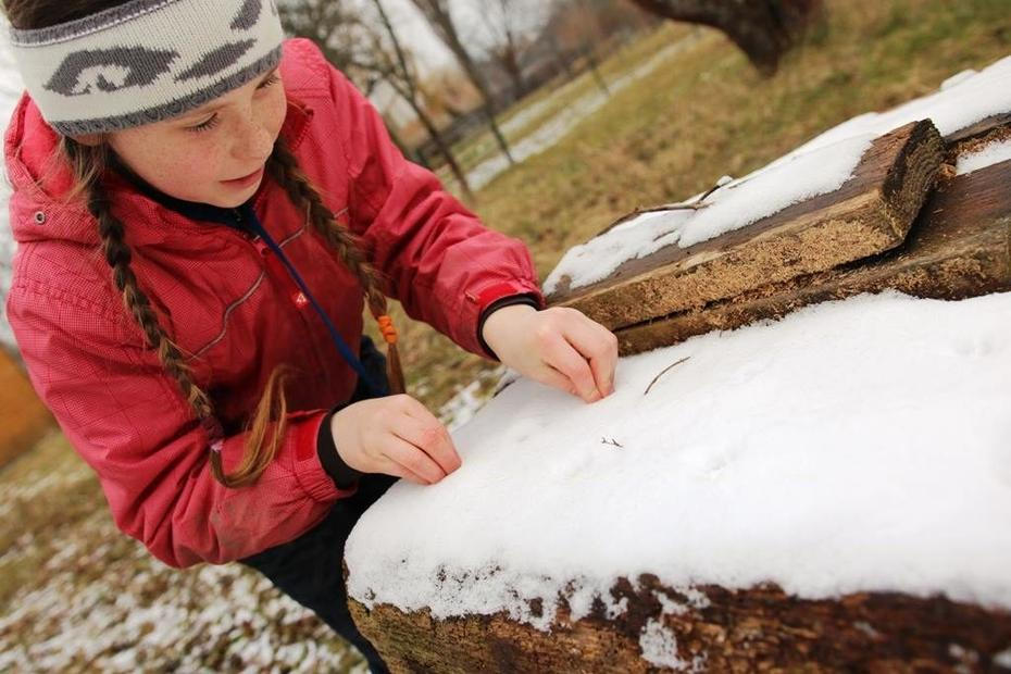 Hurá z lavic do sněhu„Minulé zimy jsme chodili pozorovat stopy zvěře, vyfukovat bubliny a sledovat, jak v mrazu rozkvétají, nebo chytat sněhové vločky na černý papír. Pořídili jsme si na to dokonce malé mikroskopy. Letos jsme díky adventním přáním dětí začali vyrážet ven i na matematiku,“ říká učitelka Andrea Tláskalová ze ZŠ ve Zbirohu. Má takovou předvánoční tradici: nechává děti, aby na papírek napsaly, co by chtěly ve škole dělat. Každý den pak jedno přání vylosují, a společně si ho splní. „Když jsme letos losovali – zrovna byl hodně deštivý den – nevěřila jsem vlastním očím: většina dětí napsala, že se chce učit venku!“ A sliby se musí plnit… „Nechtělo se mi, ale šli jsme. Nejdřív si děti našly klacek, který ZLOMily na polovinu a hned měly ZLOMKY. Díky čerstvému poprašku s opravdovou radostí kreslily do sněhu čtverce, které dělily různým způsobem na poloviny, čtvrtiny, osminy." "Obrazce byly velké, všichni jsme hned viděli víc řešení. Kamínky potom děti hravě dělily na pětiny, třetiny a na co to šlo. Bylo to naprosto skvělých 20 minut venku, kdy si zapamatovaly víc než za hodinu v lavici. A mě zahřál dobrý pocit,“ vzpomíná Andrea Tláskalová na prosincový den.