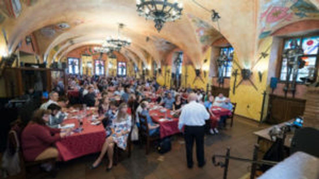 „Máte rádi děti?“ ptá se přítomných učitelů na úvod přednášky menší chlapík s náušnicí v uchu a pestrobarevnou kravatou, která komplikuje práci fotografům. „Pokud ne, čeká vás příšerných čtyřicet let,“ říká s úsměvem.
