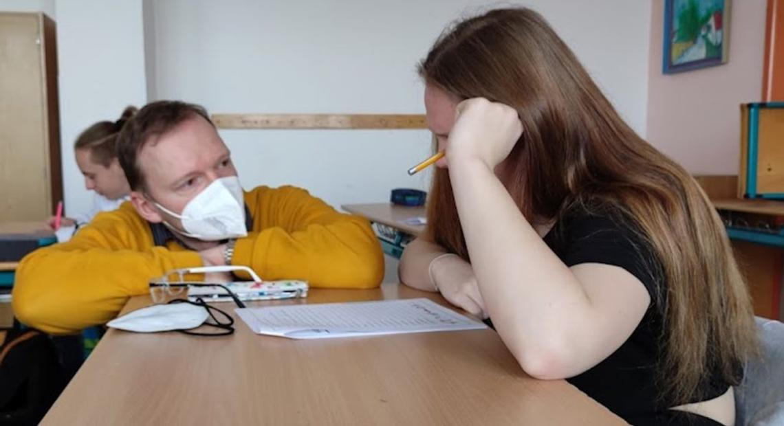 „Kdo už má něco napsáno u nálady a chtěl by to sdílet?“ ptá se Petr Jíša a slova se hned ujmou kluci ze zadních lavic. „Nálada veselá nebo špatná,“ říkají. „A co to je špatná nálada? Co cítím, když mám špatnou náladu?“ doptává se ředitel. „Cítím se naštvanej, někdo třeba něco udělá, mě to rozčílí a mám špatnou náladu,“ vysvětlují kluci a spouští tím debatu na téma emocí. Napřed si společně pojmenovávají emoce, padají termíny jako smutek, radost, znechucení, vztek, pláč. „Je pláč emoce?“ nadhazuje ředitel do pléna a postupně se třída shoduje na tom, že pláč není emoce sama o sobě, jako spíš jejím projevem, stejně jako třeba smích.