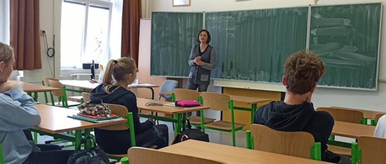 Stát se na chvíli učitelkou je pro mě lákavé. Několik let píšu hlavně o vzdělávání, chodím se dívat k inspirativním učitelům, takže jsem zároveň nervózní a zároveň se těším. Mám k dispozici studenty místní češtinářky Michaely Šédové a plánuji jim trochu osvětlit, jak to funguje v redakci zpravodajského média. Když se představuji první partě (čekají mě dvě vyučovací hodiny, kdy se u mě ve třídě vystřídají poloviny jedné třídy), cítím, jak se mi trochu chvěje hlas. Jsem překvapená z toho, že ačkoliv je studentů ve třídě jen jedenáct, některé děti sedí až v zadních lavicích a po jednom. S pobavením vzpomínám na svá vlastní studentská léta, a na druhou stranu si říkám – já je přece nehodlám hodnotit, je to pro ně „volno“, proč si nesednou někam blíž?