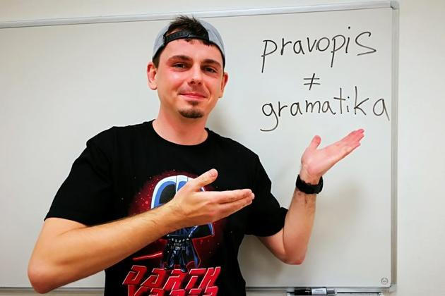 Snažím se výklad něčím oživit, komunikovat se studenty, vtipkovat, dělat narážky, ale zároveň je to fakt naučit. Dávám jim širší souvislosti, snažím se podněcovat k přemýšlení, povídám jim o lingvistice, aby pochopili, že čeština zdaleka není jen pravopis. Pravopis je jen soubor pravidel, který někdo stanovil, to není jazyk. Je super psát bez chyb typu i/y, s/z, ale mnohem zajímavější je jít za podstatu jazyka a poznávat jej do hloubky. Pak zjistíte, že je jazyk nesmírně složitý organismus, a třeba i ten pravopis pochopíte líp. I na instagramu mi studenti často píšou: „Takhle mi to nikdo nevysvětlil.“