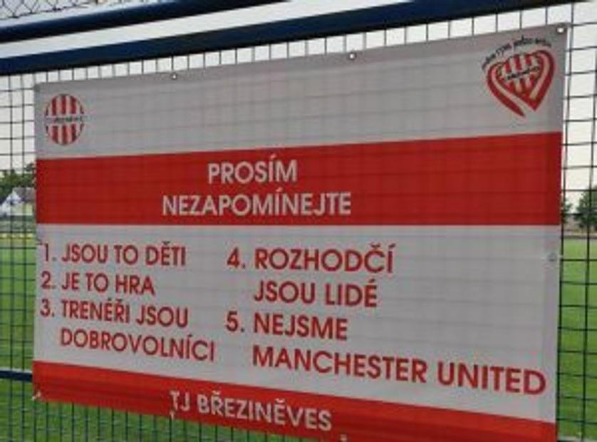 Před dvěma lety jsme si vyrobili takovou ceduli, kde jsme svoji klubovou filosofii shrnuli. Inspirovali jsme se v cizině, upravili jsme si ji do našeho tónu a našich barev, připevnili ji u nás na hřiště, a musím říct, že to funguje. Někteří se opravdu chytnou za nos.