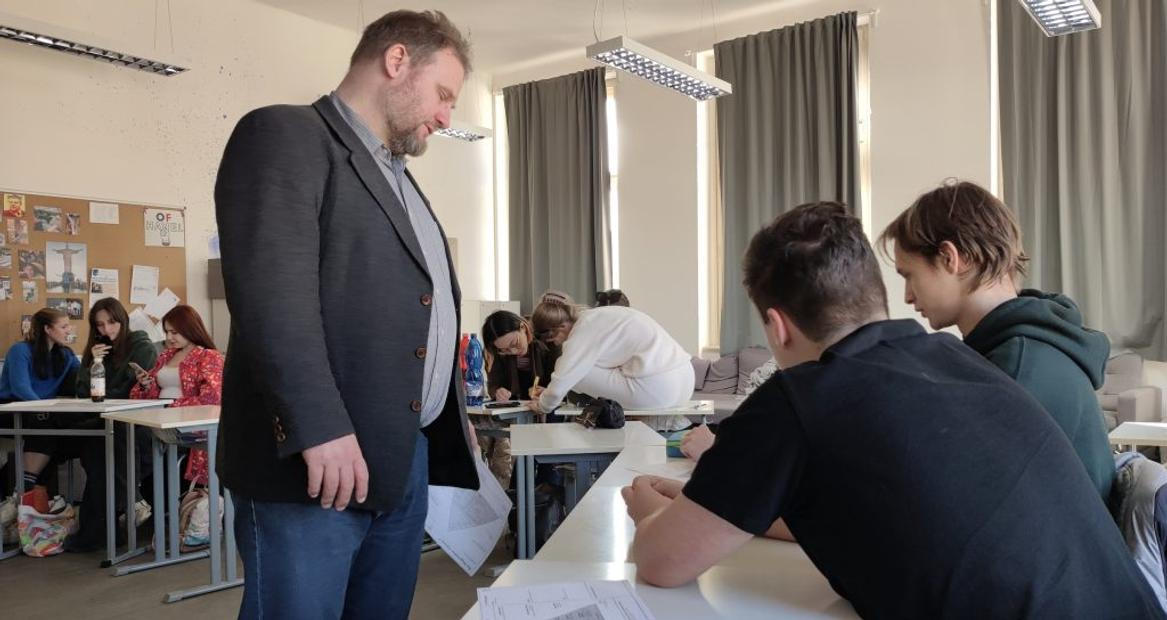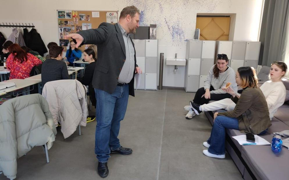 Protože se už blíží čtvrtá hodina, a tím i konec vyučování, svolává Tomáš Burda studenty zase do lavic. „Úplně jste se do toho vžili, to mi přišlo super. Dokázali jste v klidu argumentovat, přicházeli jste na řešení. Gratuluji,“ skládá třídě poklonu. „Pokud vás někoho vyjednávání baví, mám pro vás nabídku – můžete změřit síly se studenty právnické fakulty. Kdo se na to cítí, tomu řeknu detaily.“ Nikdo se nehlásí, a tak je vyjednavač ještě povzbuzuje: „Jak jsem vás slyšel, tak před vámi mají náskok věku a znalosti nějakých zákonů, ale jinak se s nimi můžete v pohodě měřit.“ Nakonec zvedá ruku Viktorie s tím, že to zkusí – a vedle sedící Aneta se přidává, že půjde kamarádku podpořit.
