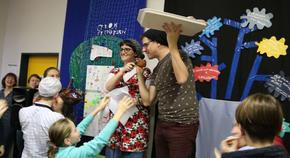 O dva dny dřív se ve 2.B hrálo divadlo naruby – děti si navzájem předváděly různé pohádky, jen vždycky skončily trochu jinak, než jak je známe. Ve středu si každý mohl do třídy přinést vlastní zvíře, tedy krom chlupatých. „Měli jsme tu papouška, želvu a měl dorazit i had, ale z toho nakonec sešlo. Majitelé chlupatých zvířátek nám o nich mohli natočit videa nebo aspoň ukázat fotky,“ popisuje učitelka.
