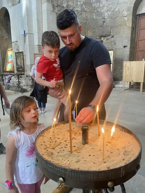 A naše cesta do Gruzie byla spíš taková menší expedice. Měli jsme půjčená terénní auta a vydali se do hor, jezdili jsme offroad a děti to bavilo. V horách jsme byli ubytovaní u staršího páru, děti tu krmily slepice a byl to pro ně zážitek. Teda nejen krmení slepic, ale celá ta cesta.