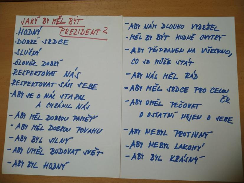 A pak si to děti hrozně chtěly zkusit a taky volit. Tak se některé z nich staly prezidentskými kandidáty a zvolili jsme si ve třídě prezidenta.