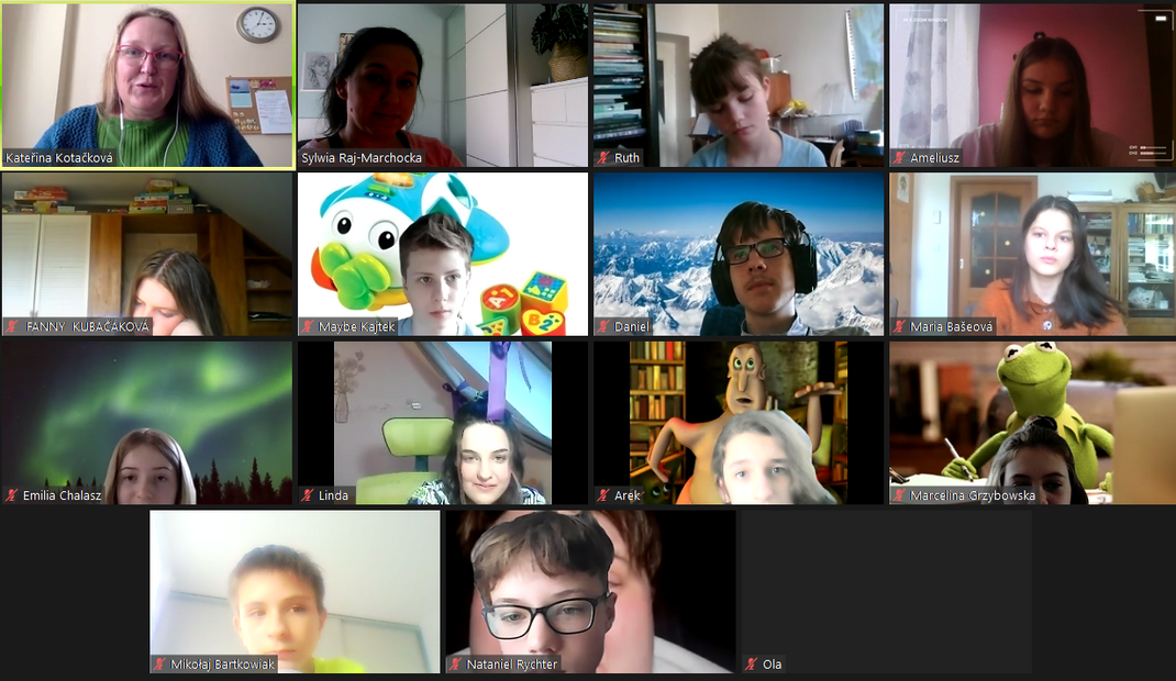 Waldorfská pedagogika má svá specifika a týká se to i výuky jazyků. Žáci nememorují slovíčka, gramatiku mají až na druhém stupni, zato od první třídy hrají v cizím jazyce divadlo. Pro období distanční výuky vymyslela angličtinářka Kateřina Kotačková ještě jednu specialitu: on-line setkávání s učiteli a studenty z cizích zemí. „Někteří žáci se díky tomu rozmluvili a ti ostatní se zlepšili,“ pochvaluje si učitelka.