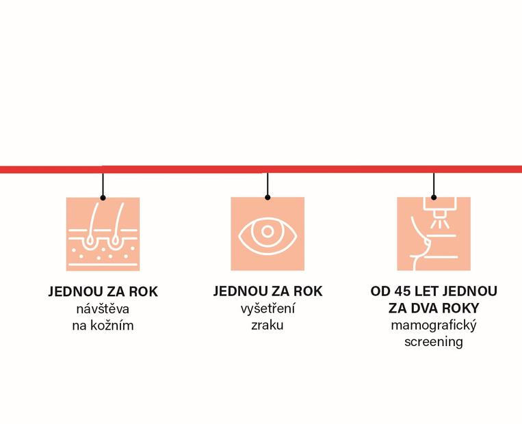Šestatřicetiletá Blanka je čerstvou mámou malého Šimona. Se synem poctivě absolvuje všechny návštěvy pediatra: vyšetření motoriky, ortopedie, očkování. Kromě lékařských prohlídek s miminkem ale nezapomíná ani na ty, které stát hradí jí samotné. „Takovou tu doporučovanou klasiku dodržuju, i když mě to samozřejmě nebaví. Jednou ročně chodím k zubaři, jednou ročně ke gynekologovi, jednou za dva roky preventivka u obvodního. Taky chodím na sono prsou, kvůli rodinné anamnéze mám zvýšené riziko. Považuju to za svoji zodpovědnost. Tím spíš, že jsem máma. Člověk chce být zdravý, aby tu pro svoje děti mohl být co nejdéle. Letos mi zemřel tatínek na rakovinu. Je to určité memento: víc se hlídat, o to zdraví se opravdu starat.“