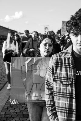 Po úvodních proslovech zazněly i některé rozsudky, které má Bez trestu k dispozici, a pak se pochod několika set lidí vydal z Palackého náměstí přes Zítkovy sady a po Náplavce přes ulici Na Hrobci a Vyšehradskou ulicí až k Ministerstvu spravedlnosti. Po ukončení akce byly fialové stužky přivázány na mřížování oken instituce. Heroine před pochodem krátce vyzpovídala jednu z organizátorek akce, advokátku Lucii Hrdou, a také několik účastnic a účastníků protestního pochodu.