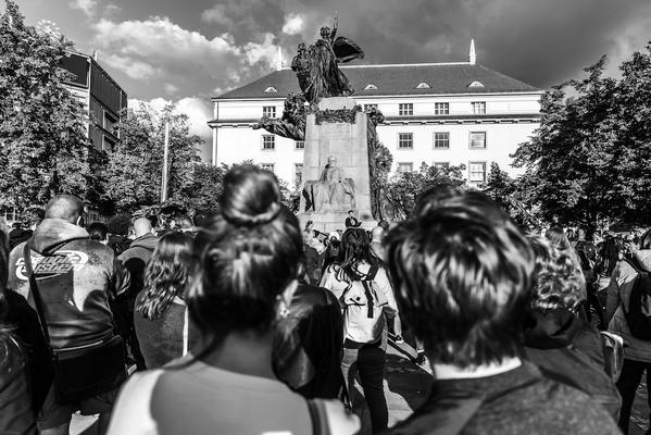 Hloučky lidí před pátou hodinou odpoledne poklidně zaplnily Palacké náměstí v Praze. Po roce a půl se tu ve čtvrtek 22. září konal další pochod iniciativy Bez trestu, která dlouhodobě ve veřejném prostoru poukazuje na nedostatečnost trestů za sexualizované a domácí násilí. Všichni si mohli před demonstrací na zápěstí nechat připevnit fialovou stužku, která je symbolem obětí sexualizovaného násilí a jejich svázaných rukou při dosahování adekvátní spravedlnosti v trestně právním systému.