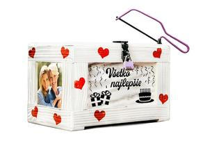 Truhlu si můžete po přidání do košíku také personalizovat a ozdobit ji podle svého. Přidejte na ni třeba společnou fotku, vlastnoručně psané 3D přání, srdíčka, 3D znamení zvěrokruhu a další motivy. Díky tomu se z Truhly rázem stane opravdu osobní dárek pro kamarádku, který si ještě víc zamiluje.