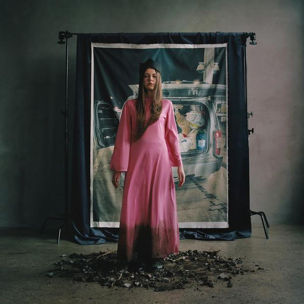 Obraz na pozadí, který je vytištěný na látku, byl zachycen ukrajinským umělcem Artemem Humilevskim během prvních válečných dní. Jde o fotografii jeho sklepa, ve kterém se ukrývá se svou rodinou.