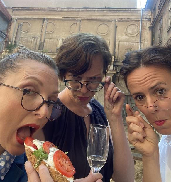 Nezastíráme, že redakce se při focení výborně bavila… (Zprava: Michaela Kramárová, Veronika Hesounová a Ilona Kleníková v epizodních rolích pohoršených akademiček.)