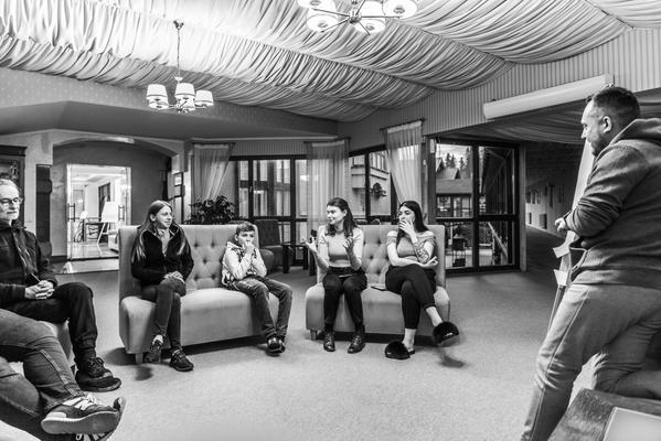 Dokumentování válečných zločinů je jednou z front, na které bojuje současná Ukrajina. Už v prvních dnech ruské invaze začaly ukrajinské lidskoprávní organizace shromažďovat svědectví a důkazy o zločinech, které ruskou agresi provázejí. Podklady k několika tisícovkám případů možných válečných zločinů dosud shromáždil i tým Vzdělávacího domu lidských práv v Černihově. Letos v dubnu černihovští lidskoprávníci vyčerpávající misi na pár dní přerušili a vypravili se i s rodinami do osm set kilometrů vzdálené Schidnycji. Ve vyhlášeném lázeňském středisku jižně od Lvova chtěli nabrat nové síly.