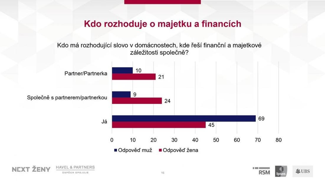 U mužů přesto podle výsledků stále převažuje větší sebevědomí a tendence přisuzovat si rozhodující slovo. Většina, přesně 70 % z nich, uvedla, že ve finále rozhodují právě oni. Ženy si přisoudily rozhodující slovo ve 45 % případů.