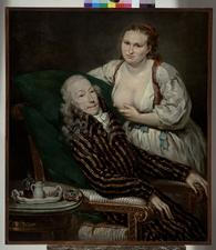 Barbara Krafft studovala, byla členkou vídeňské Akademie výtvarných umění a stala se slavnou portrétistkou. Na tomto portrétu zobrazuje hraběte Hartiga s jeho kojnou jako Caritas Romana, což je interpretace starověkého příběhu. V něm je Kimón uvězněn v hladomorně a jeho dcera mu zachrání život tím, že mu při návštěvách tajně dává napít svého mateřského mléka.